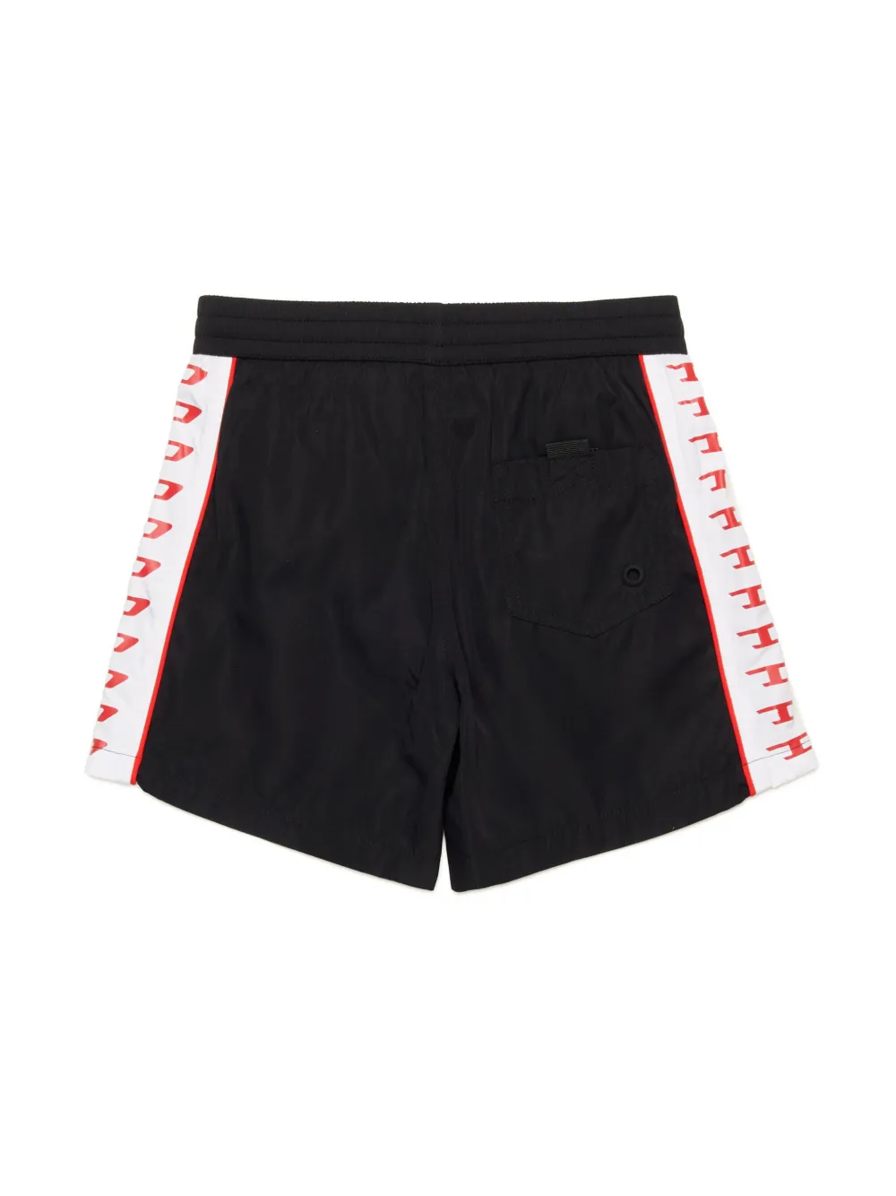 zwart elastische tailleband met trekkoord twee steekzakken aan de zijkant opgestikte zak aan de achterkant Zwemkleding moet over je eigen kleding worden aangepast.