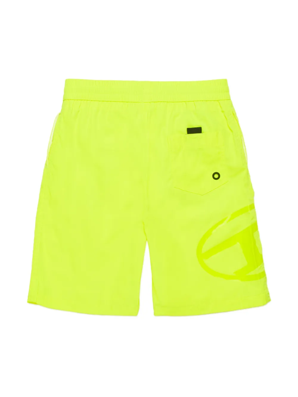 neongroen elastische tailleband met trekkoord twee steekzakken aan de zijkant opgestikte zak aan de achterkant Zwemkleding moet over je eigen kleding worden aangepast.
