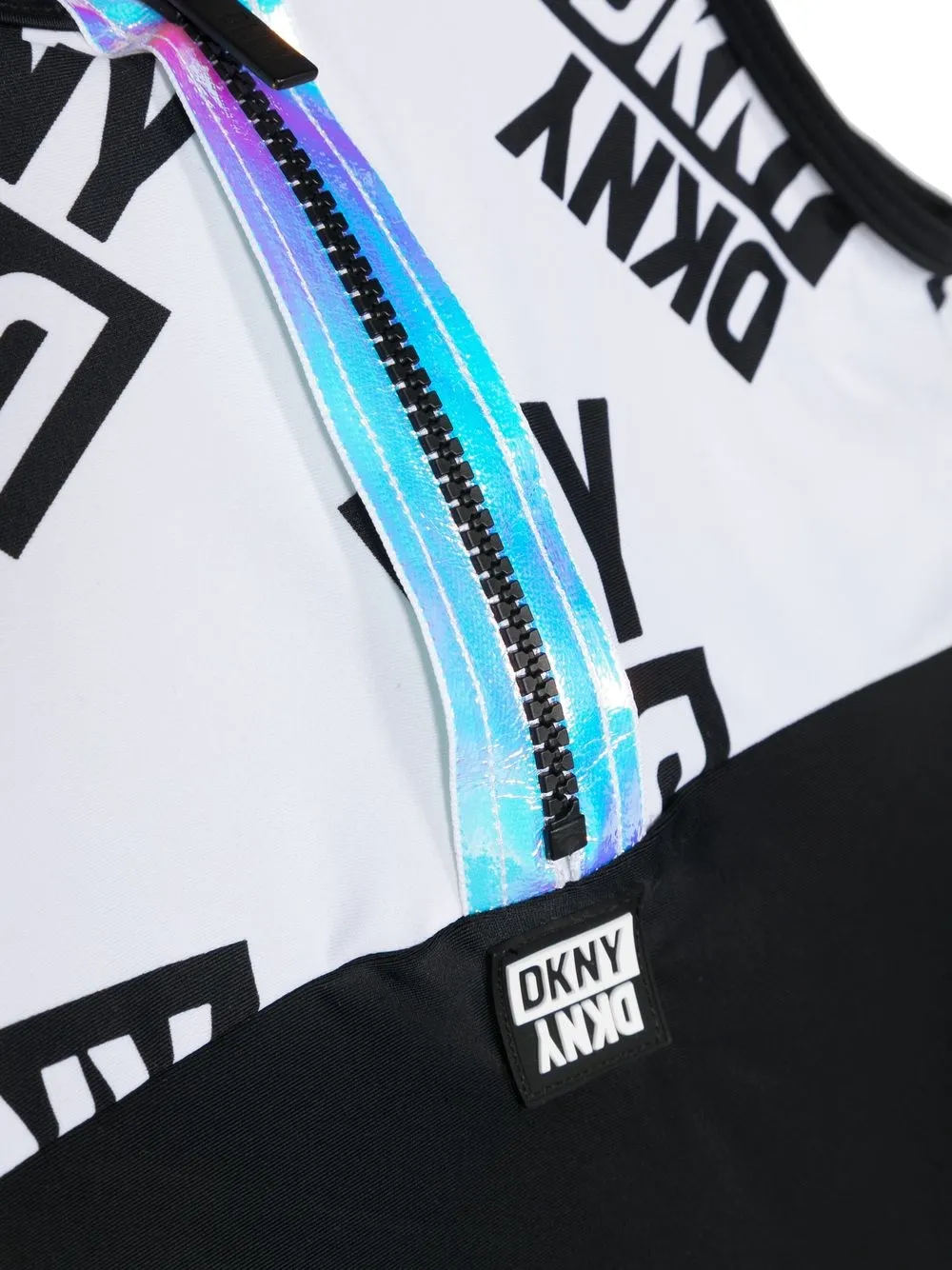 Zwart/wit, stretch design, ritssluiting aan de voorzijde en volledige voering. Zwemkleding moet over je eigen kleding worden aangepast..