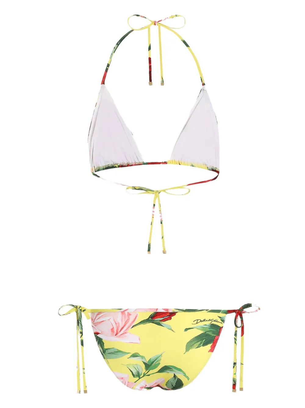 geel bloemenprint triangel cup gestrikte bandjes Zwemkleding moet over je eigen kleding worden aangepast.