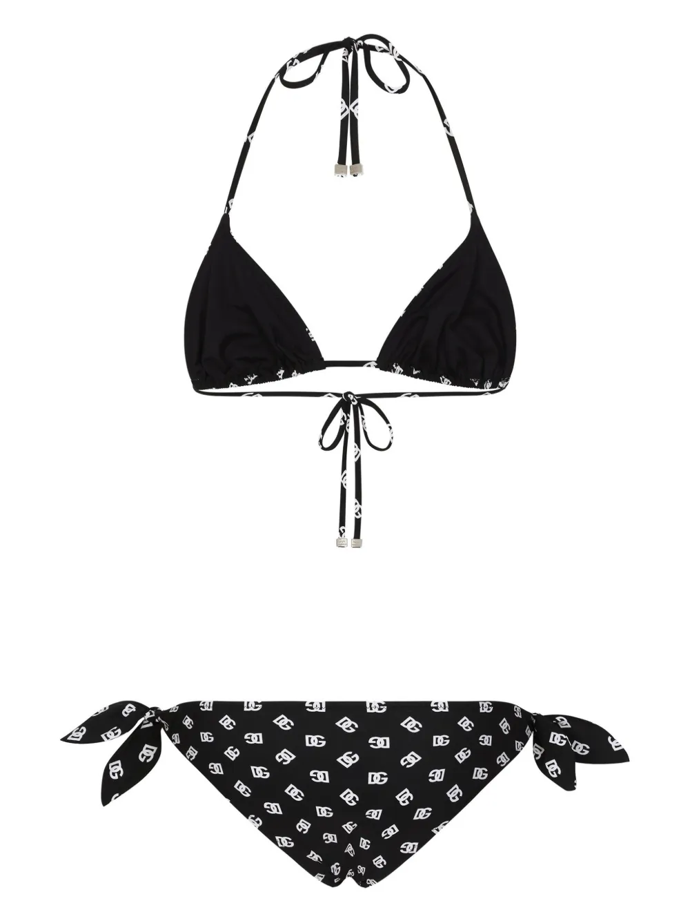 zwart/wit stretch design allover logoprint triangel cup halternek striksluiting striksluiting aan de achterkant zilverkleurige hardware met gegraveerd logo striksluiting aan de zijkant Zwemkleding moet over je eigen kleding worden aangepast.