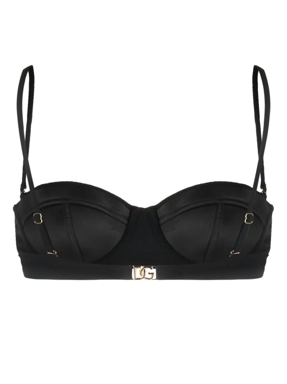 Zwart, stretch design, logo plakkaat, verstelbare schouderbandjes, sluiting aan de achterkant en halve cup. Zwemkleding moet over je eigen kleding worden aangepast..