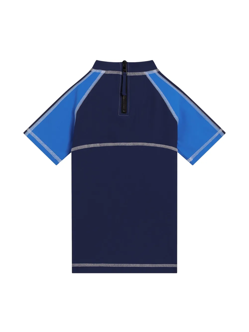 blauw rits aan de achterkant ronde hals korte mouwen Zwemkleding moet over je eigen kleding worden aangepast.