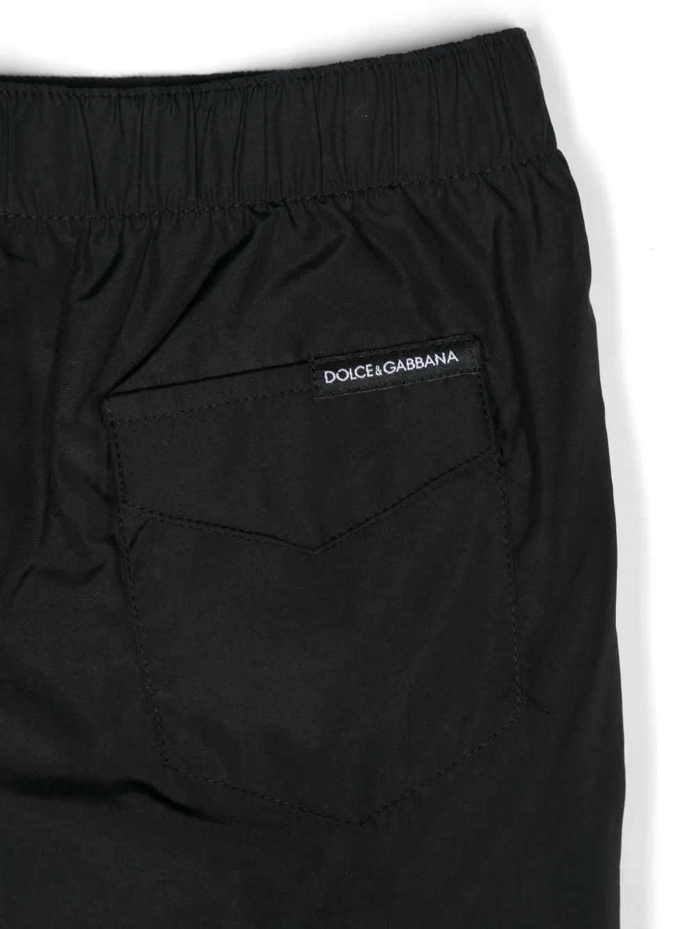 zwart/wit logoprint op de pijpen elastische tailleband met trekkoord klepzak achter shorts aan de binnenkant rechte zoom dij-lengte Zwemkleding moet over je eigen kleding worden aangepast.
