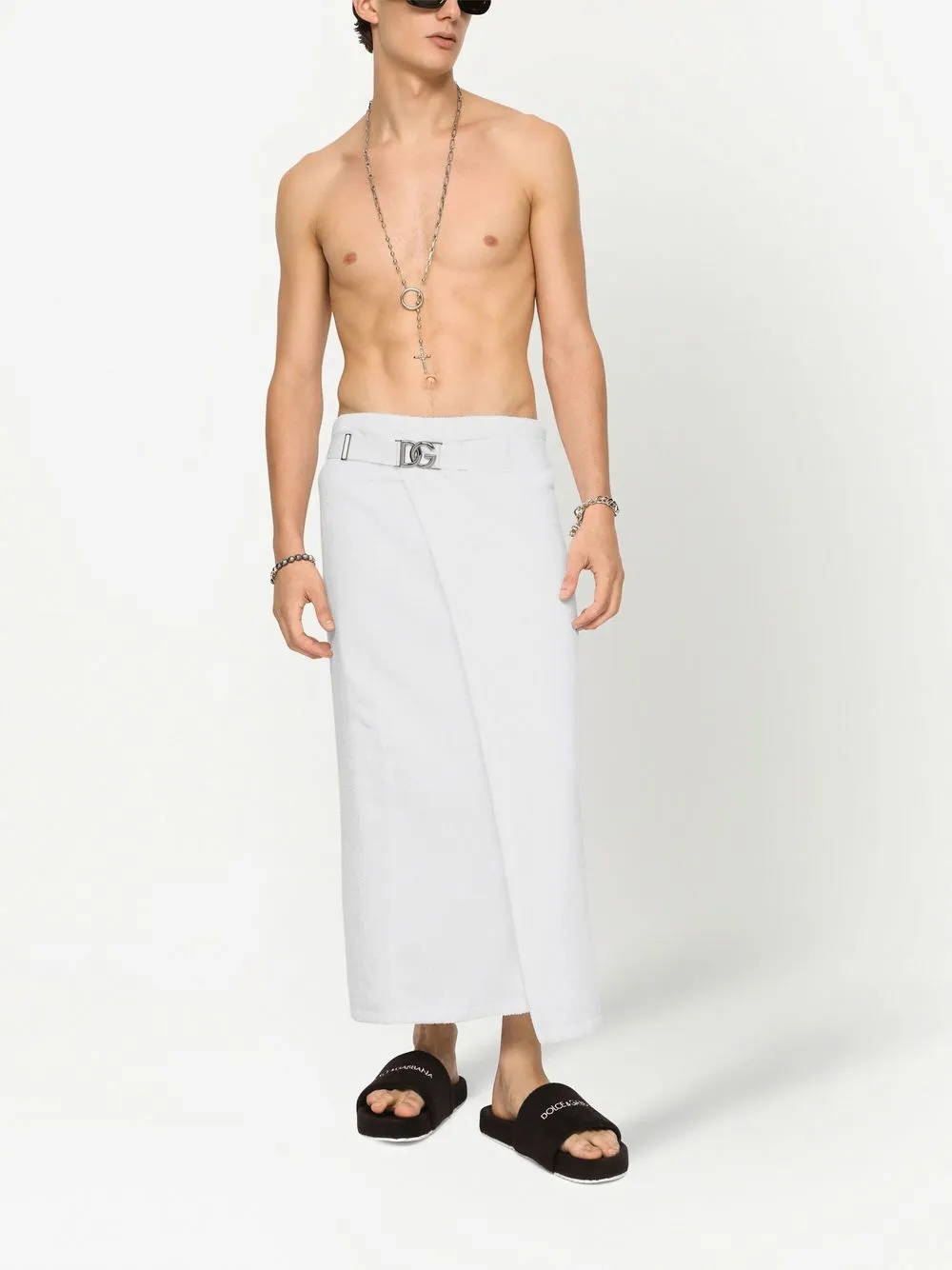 wit katoen badstof-effect zilverkleurig logo taille met ceintuur midi-lengte Zwemkleding moet over je eigen kleding worden aangepast.