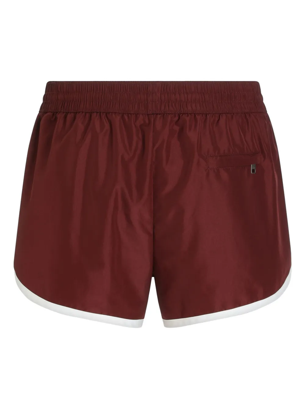 bordeauxrood elastische tailleband twee steekzakken aan de zijkant achterzak met ritssluiting Zwemkleding moet over je eigen kleding worden aangepast.
