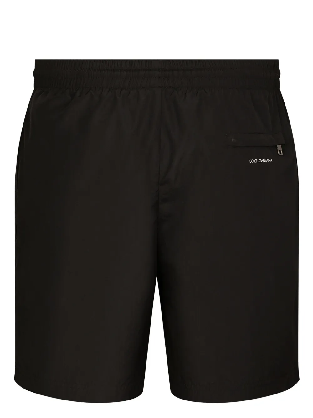 Zwart, stretch design, logoprint aan de zijkant, elastische tailleband, twee ingenaaide zijzakken, paspelzak aan de achterkant, lengte tot boven de knie en rechte zoom. Zwemkleding moet over je eigen kleding worden aangepast..