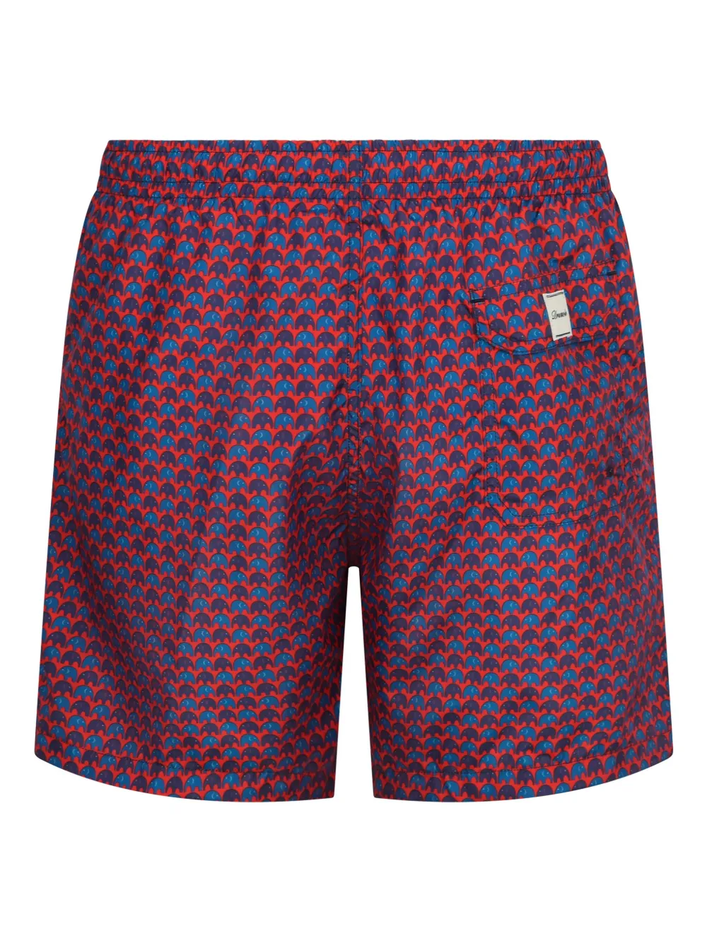 mulberry roze elastische tailleband met trekkoord jacquard met patroon twee steekzakken aan de zijkant klepzak aan de achterkant Zwemkleding moet over je eigen kleding worden aangepast.