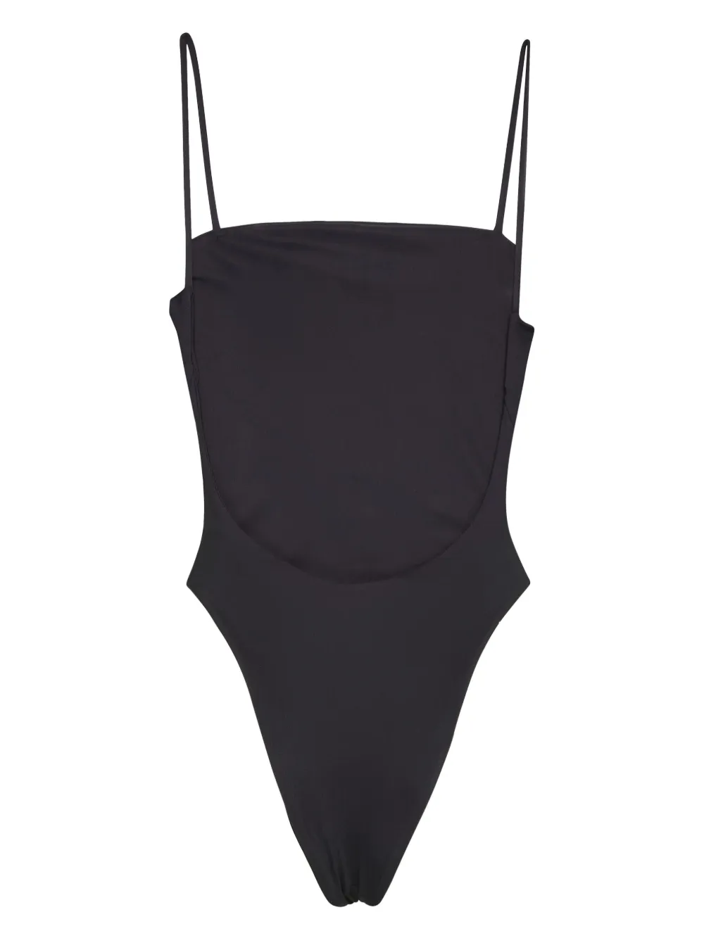 zwart stretch design vierkante hals mouwloos spaghettibandjes kenmerkend Icon patroon lage rug volledige voering slip-on stijl Zwemkleding moet over je eigen kleding worden aangepast.