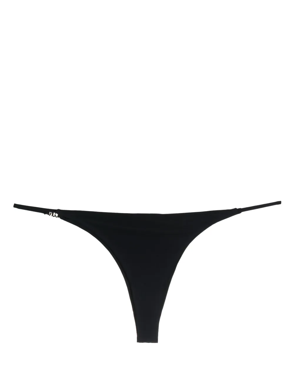 Zwart, stretch design, kenmerkende Icon print, zilverkleurig logo, string design en dunne bandjes. Zwemkleding moet over je eigen kleding worden aangepast..