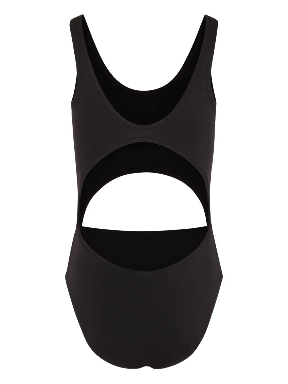 zwart uitgesneden detail diepe ronde hals laag uitgesneden rug Zwemkleding moet over je eigen kleding worden aangepast.