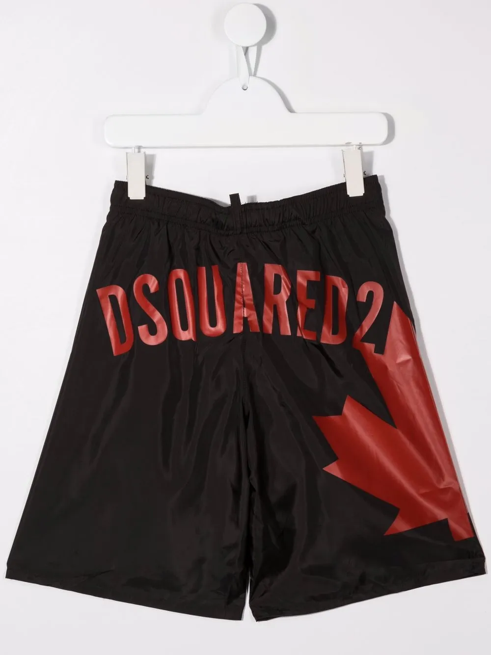 Bladerprint, logoprint op de achterkant, elastische tailleband en straight-fit. Zwemkleding moet over je eigen kleding worden aangepast..