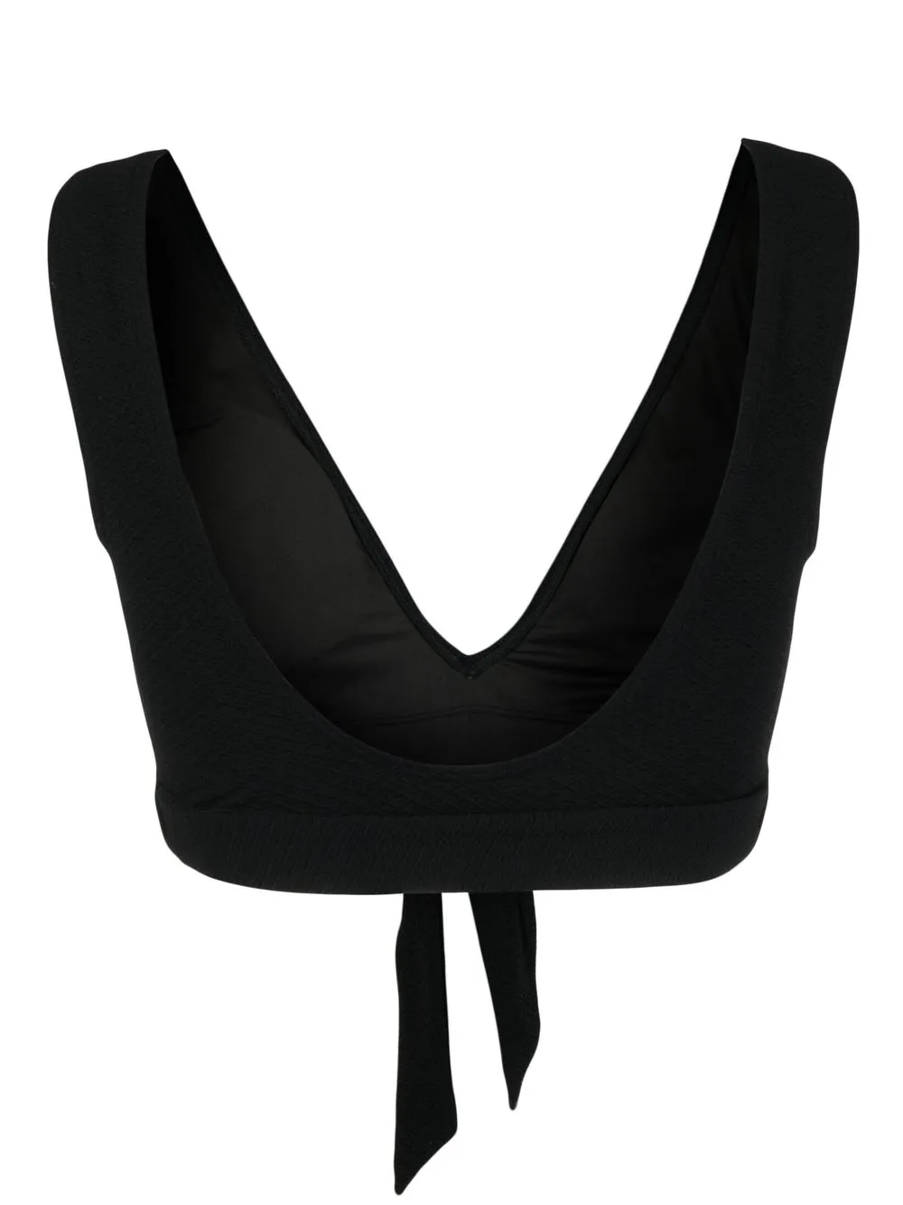 Zwart, stretch design, geknoopt detail, V-hals en laag uitgesneden rug. Zwemkleding moet over je eigen kleding worden aangepast..