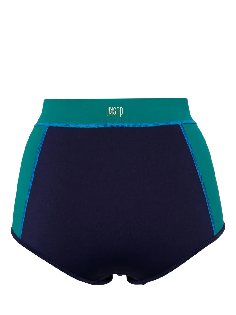 marineblauw/blauwgroen stretch design design met colourblocking high waist ritssluiting aan de voorkant logoprint op de achterkant Zwemkleding moet over je eigen kleding worden aangepast.