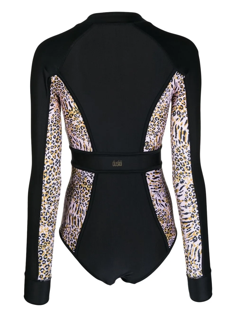 Zwart/veelkleurig, stretch design, luipaardprint, lange mouwen, taille met ceintuur en ritssluiting aan de voorzijde. Zwemkleding moet over je eigen kleding worden aangepast..