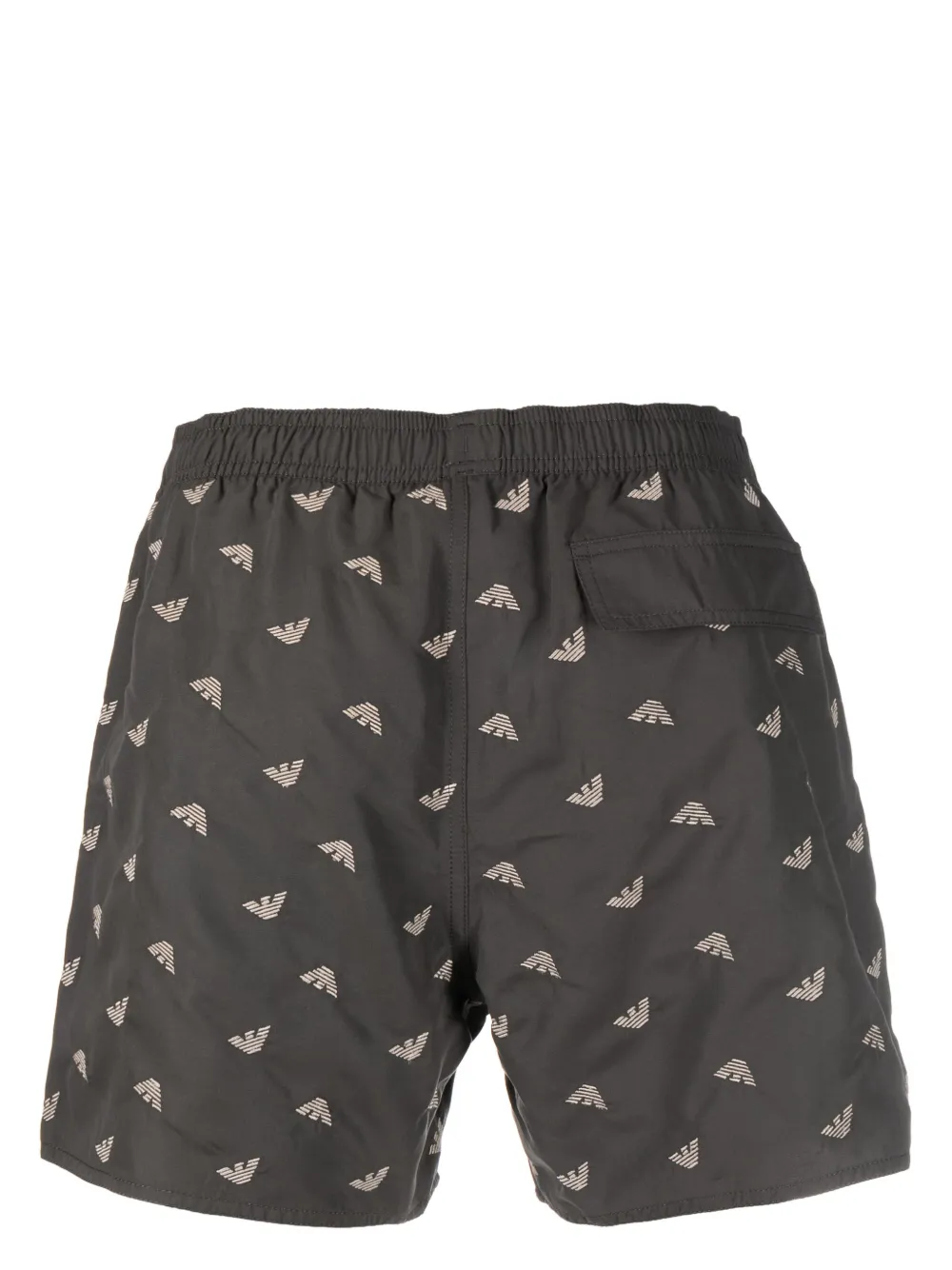Donkergrijs, all-over logoprint, elastische tailleband, trekkoordsluiting en achterzak met klep. Zwemkleding moet over je eigen kleding worden aangepast..