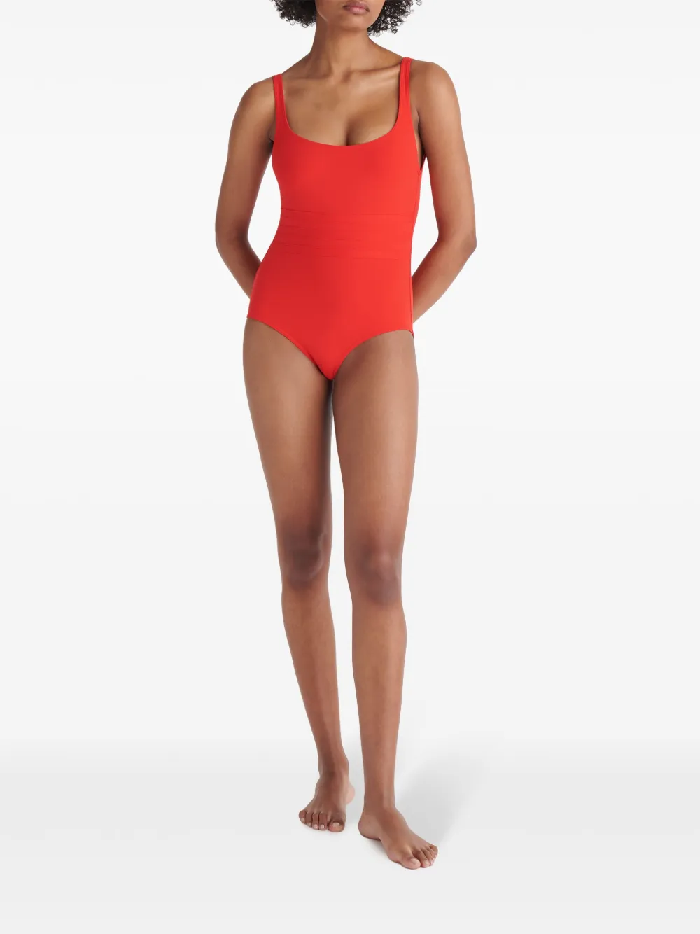 kardinaalrood stretch design ronde hals open rug mouwloos Zwemkleding moet over je eigen kleding worden aangepast.