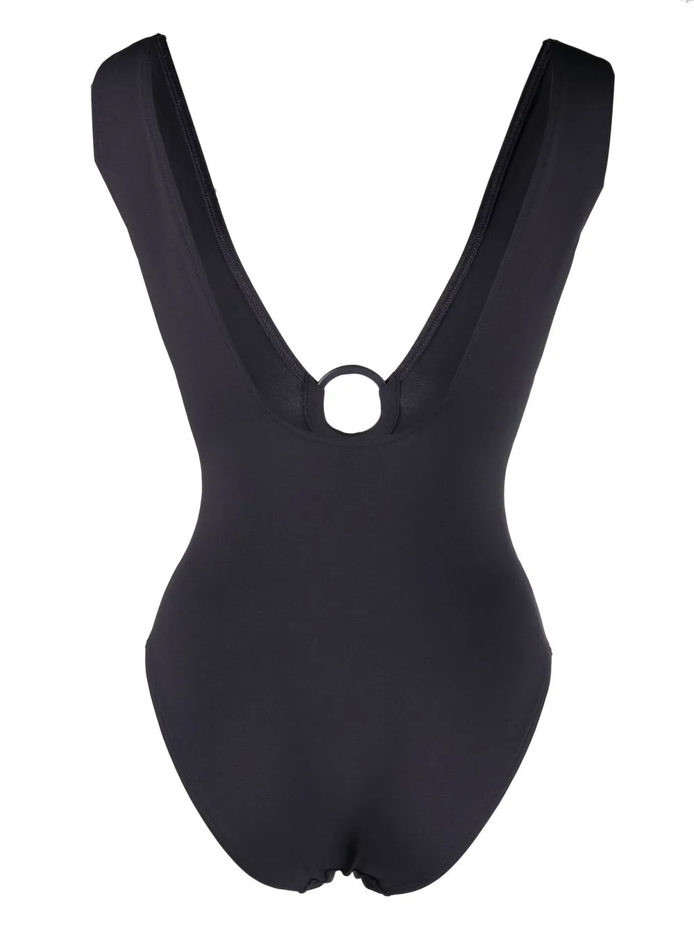 donkerpaars stretch design V-vormige watervalhals mouwloos ringdetail V-rug hoog uitgesneden Zwemkleding moet over je eigen kleding worden aangepast.