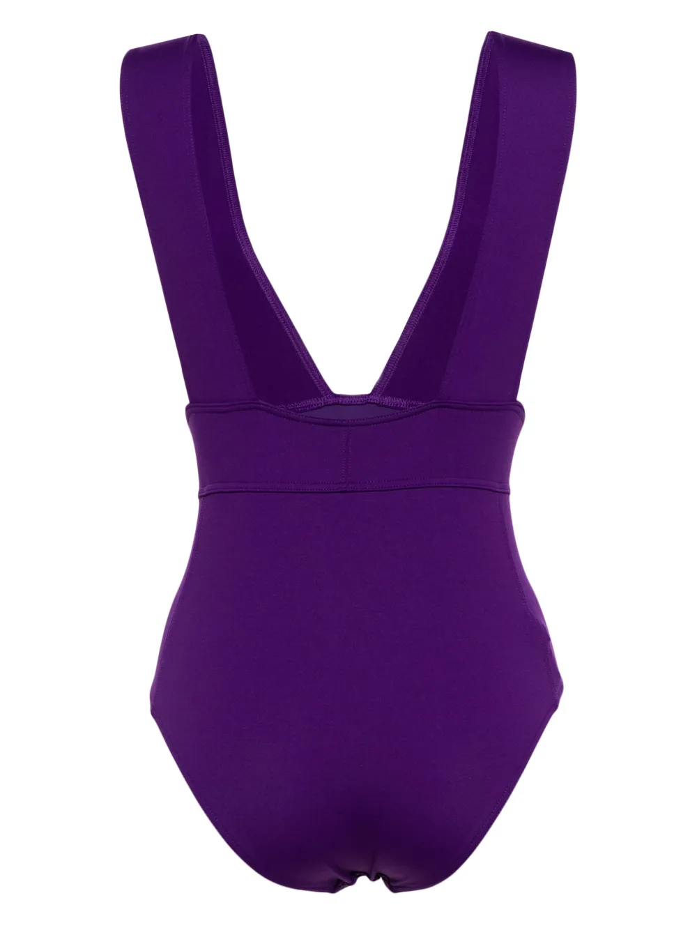 donkerpaars open rug V-hals brede schouderbandjes zoom afwerking Zwemkleding moet over je eigen kleding worden aangepast.