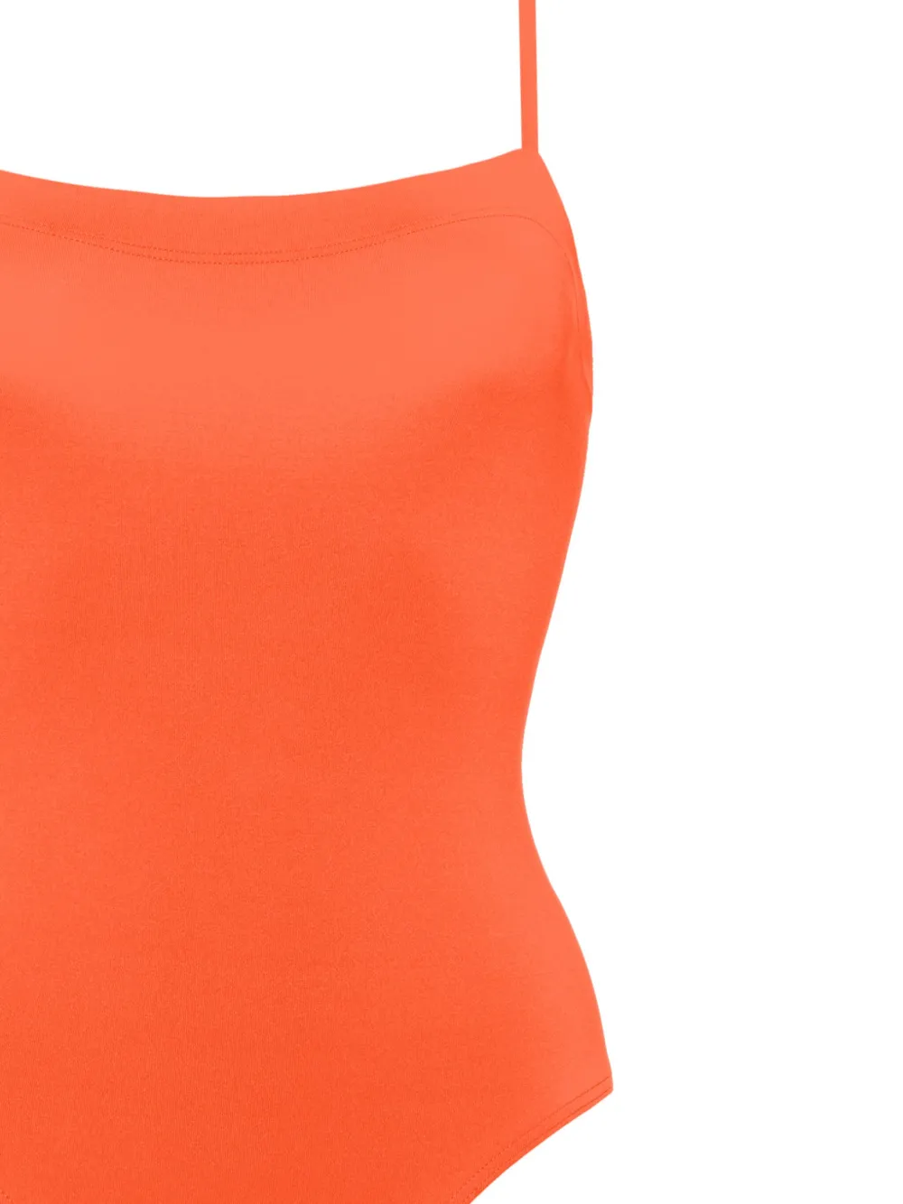 mandarijnoranje stretch design spaghettibandjes vierkante hals klassieke bikinislip Zwemkleding moet over je eigen kleding worden aangepast.