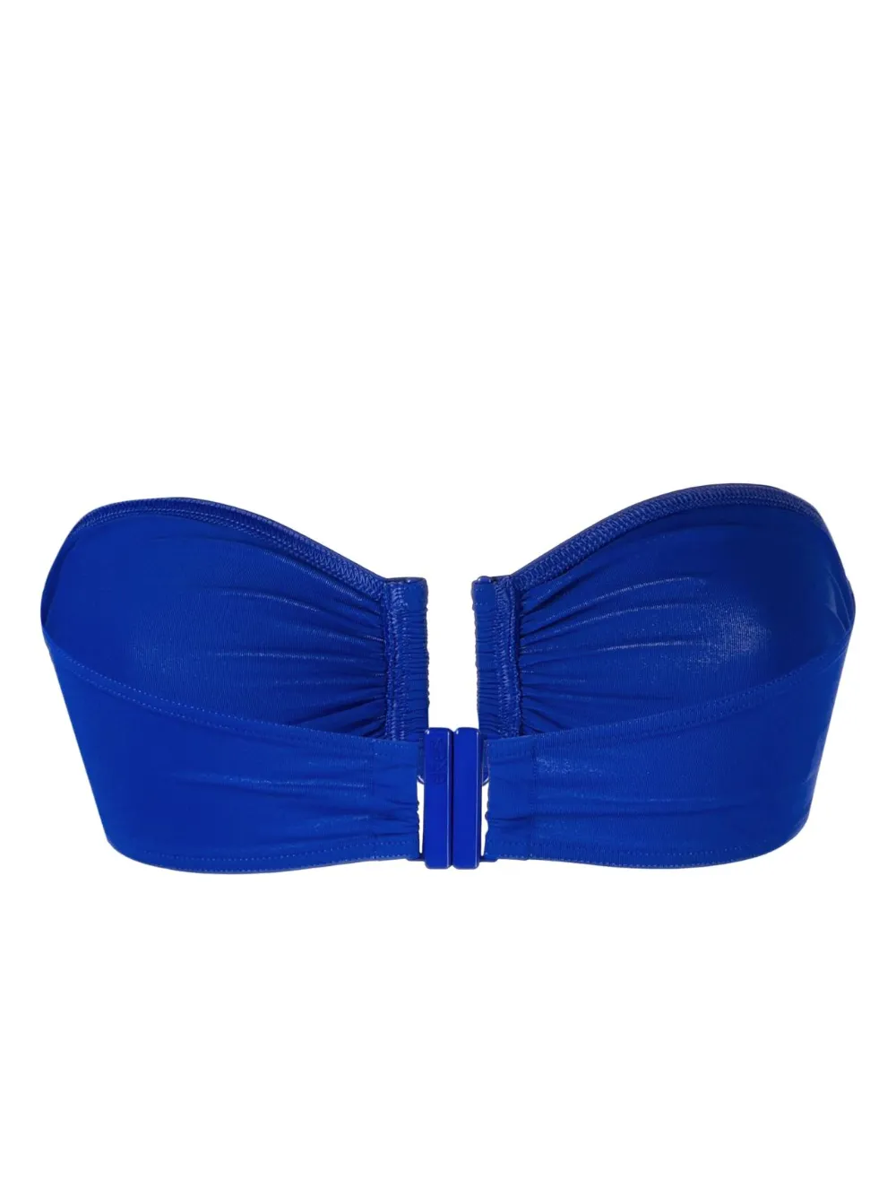 Koningsblauw, gesmockte details, bandeau, strapless en sluiting aan de achterkant. Zwemkleding moet over je eigen kleding worden aangepast..