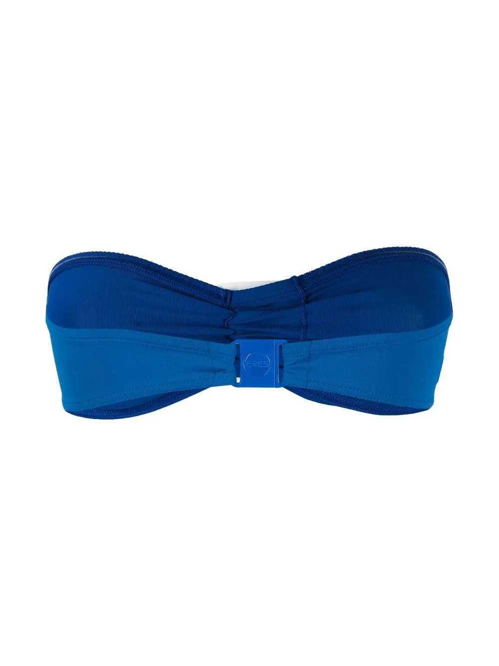 Blauw, decoratief gespdetail, gesmokte details, strapless , bandeau en stretch design. Zwemkleding moet over je eigen kleding worden aangepast..