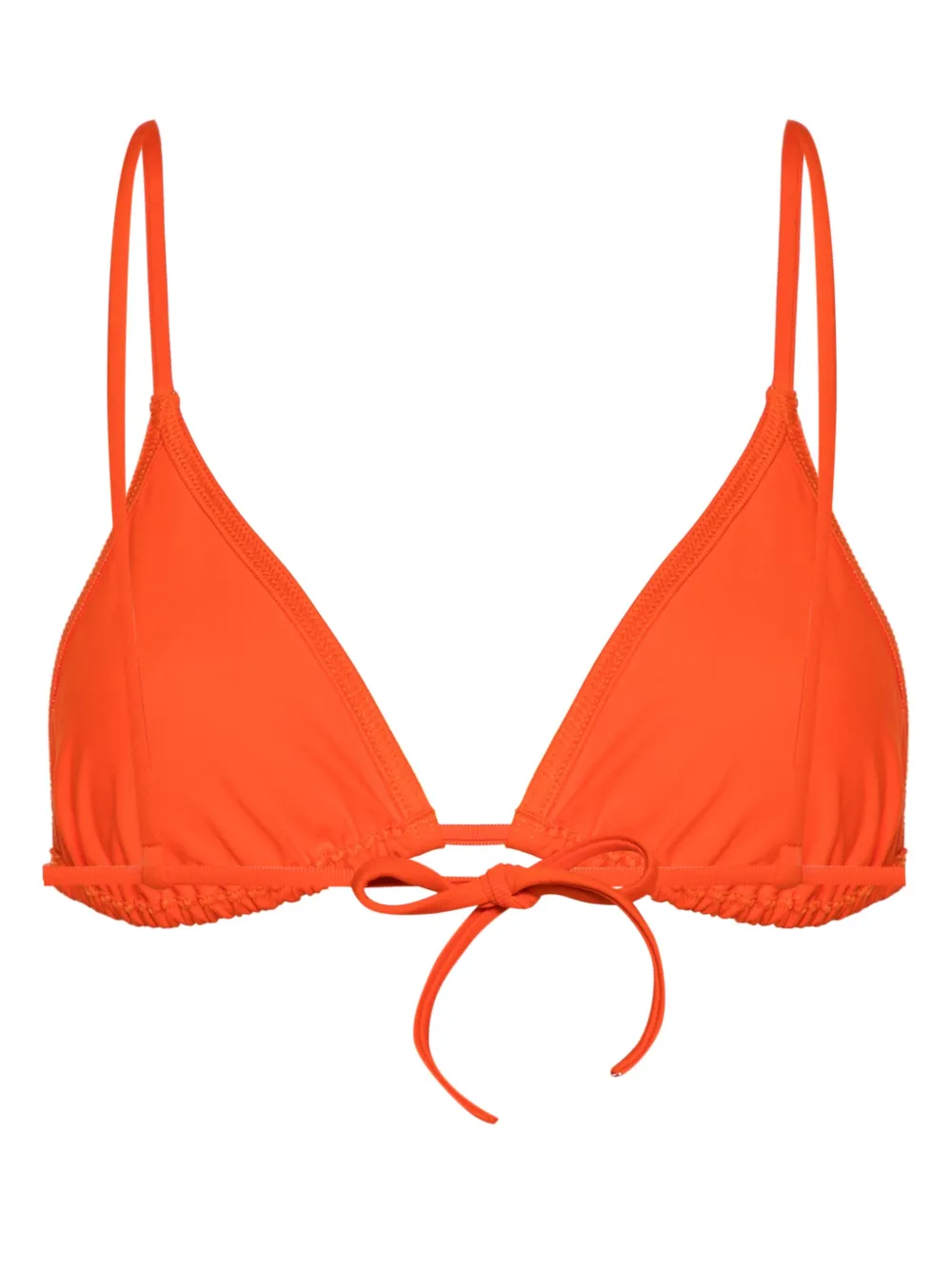 geraniumoranje stretch design triangel cup halternek striksluiting striksluiting aan de achterkant verstelbare pasvorm Zwemkleding moet over je eigen kleding worden aangepast.