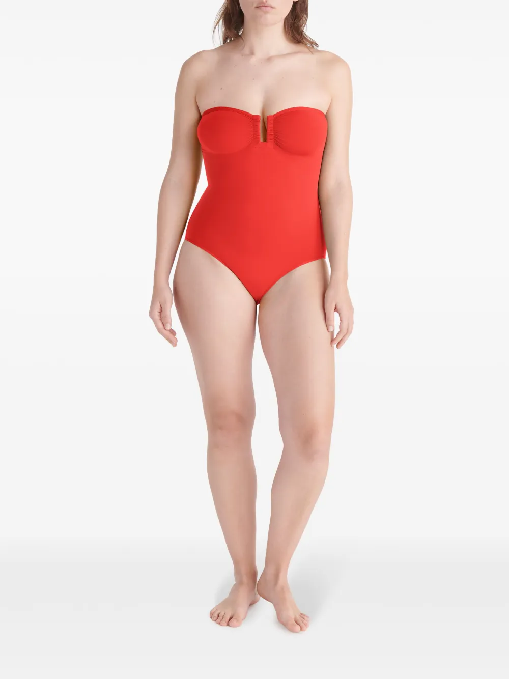 rood stretch design bustier-stijl hals metalen schakeldetail mouwloos Zwemkleding moet over je eigen kleding worden aangepast.