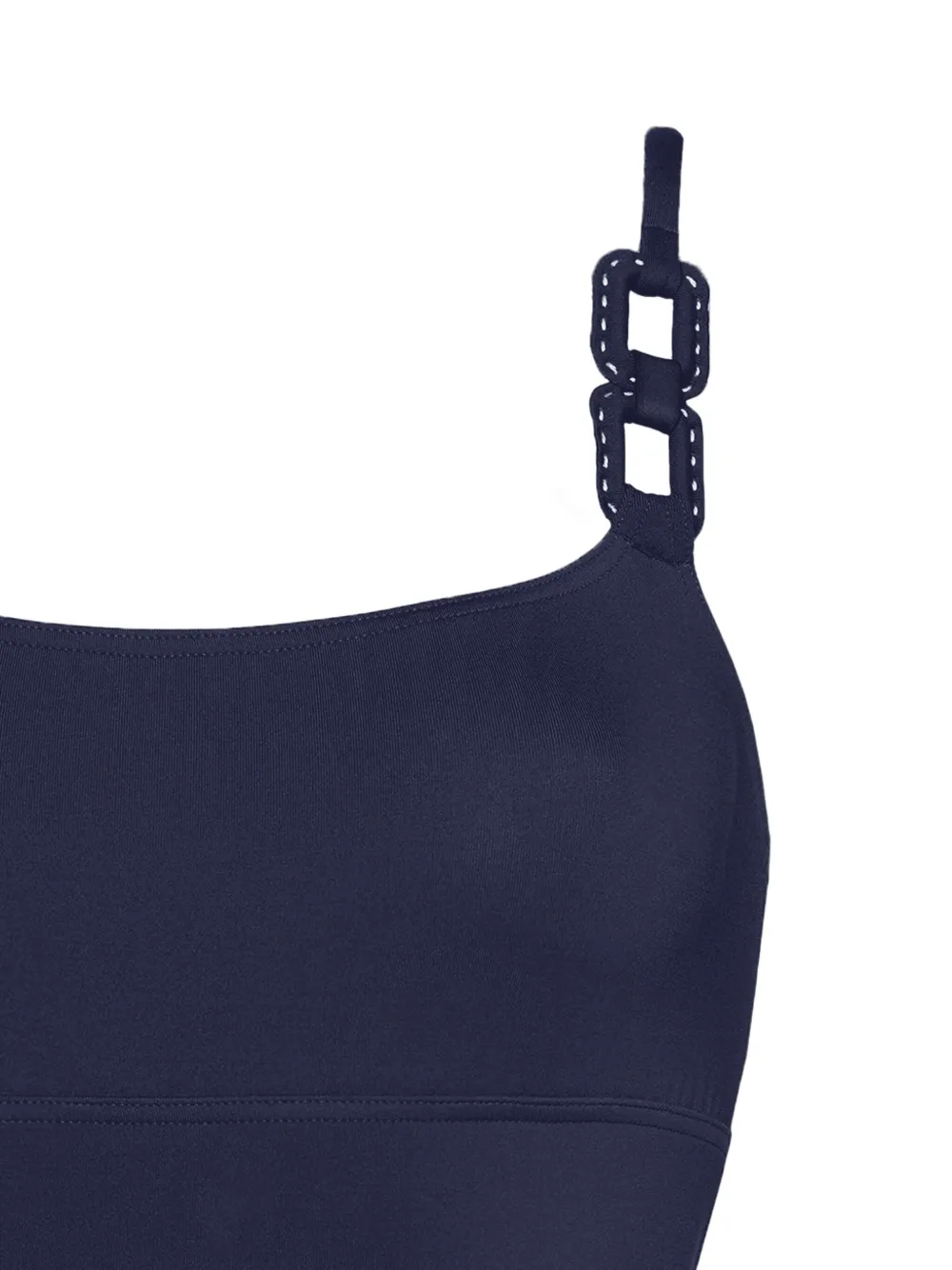 marineblauw spaghettibandjes vierkante hals Zwemkleding moet over je eigen kleding worden aangepast.