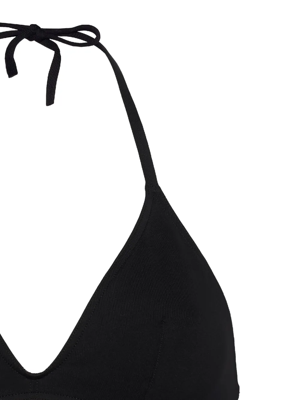 zwart stretch design geometrisch patroon triangel cup spaghettibandjes striksluiting aan de achterkant Zwemkleding moet over je eigen kleding worden aangepast.