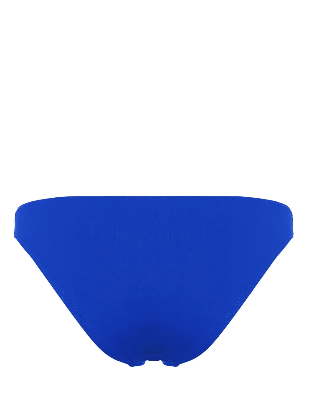 Blauw, stretch design, low waist, hoog uitgesneden en volledige dekking. Zwemkleding moet over je eigen kleding worden aangepast..