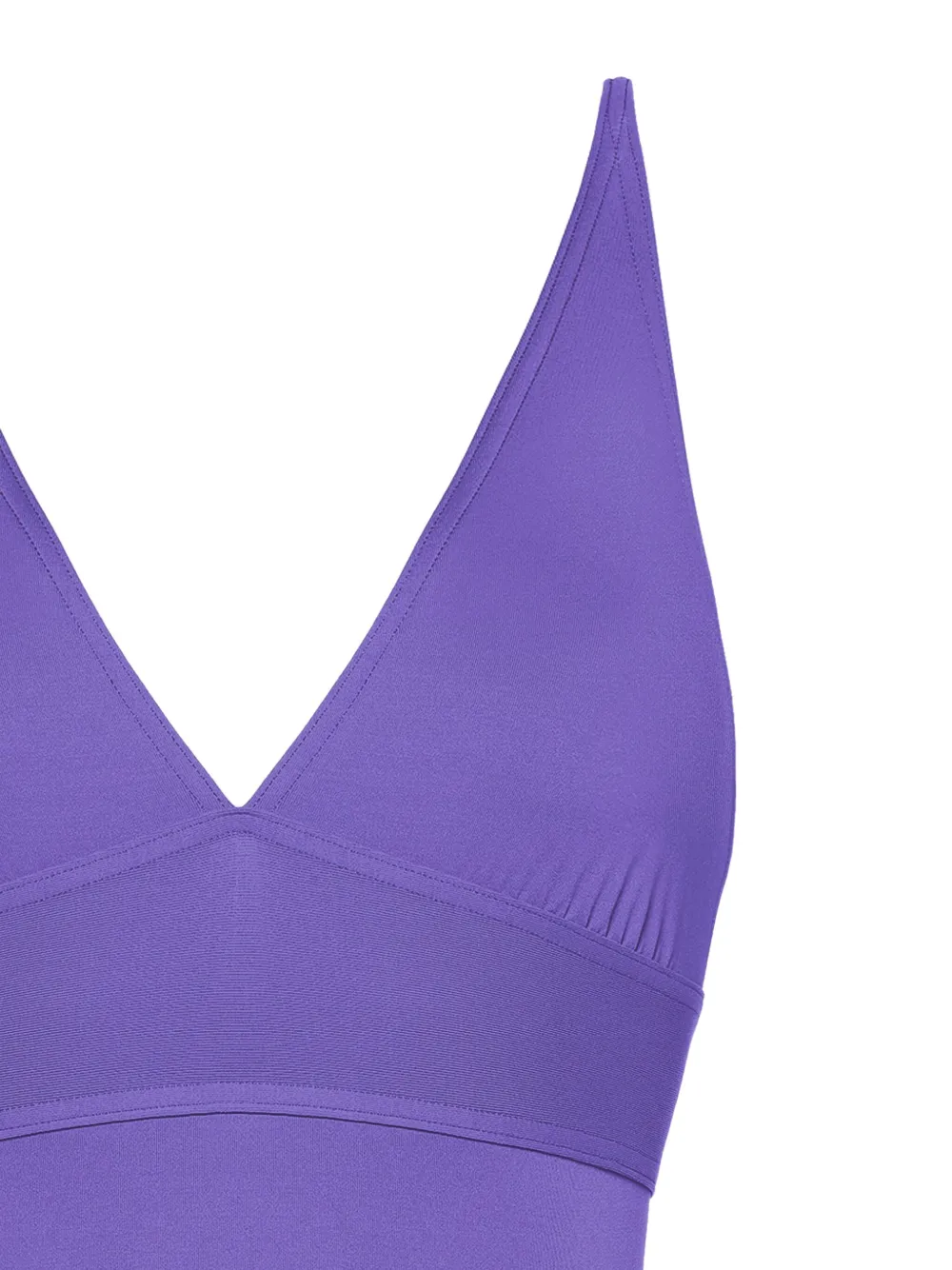 violetpaars stretch design V-vormige watervalhals dunne bandjes lage rug klassieke bikinislip Zwemkleding moet over je eigen kleding worden aangepast.