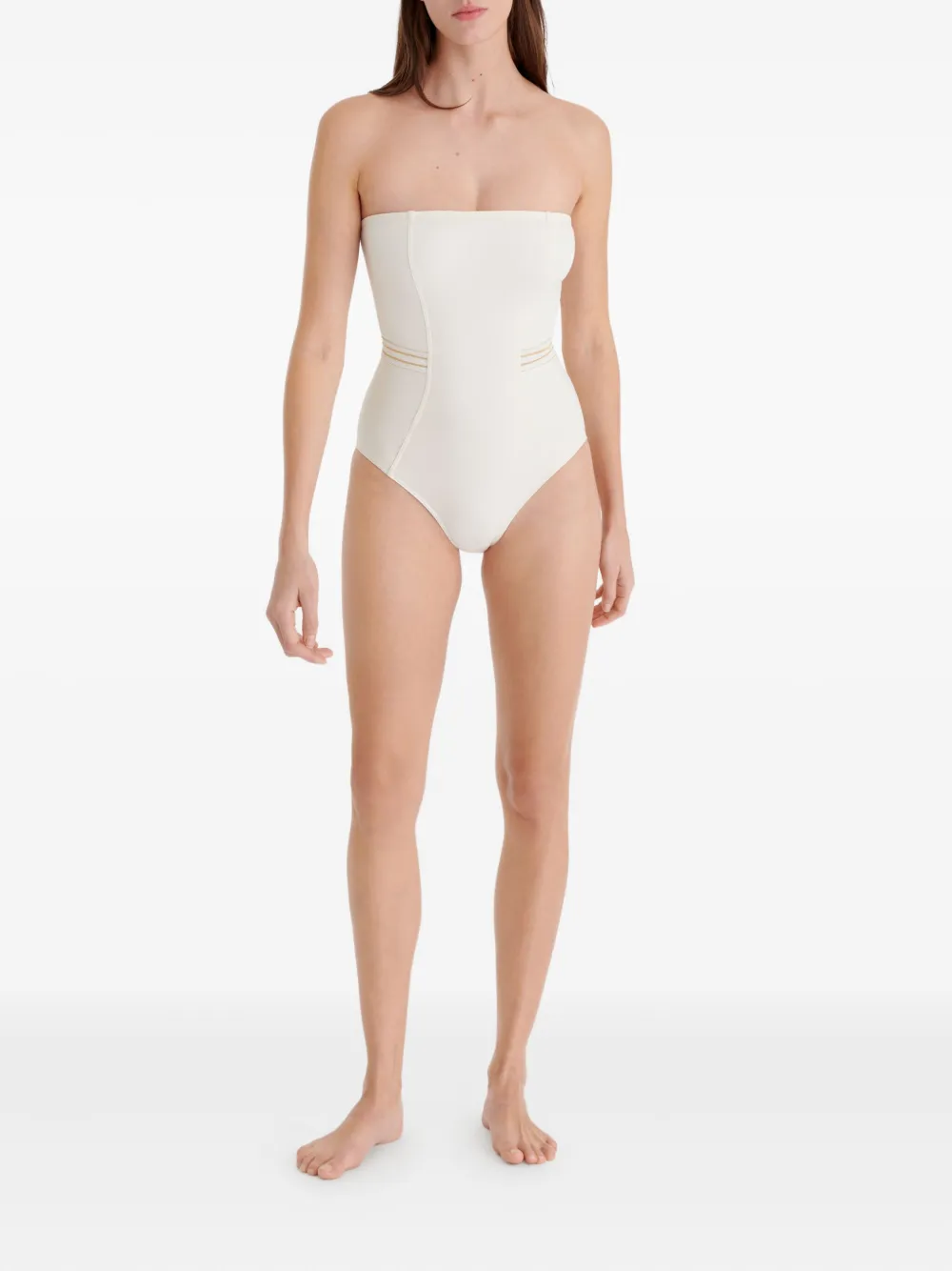 wit horizontale strepen in de taille gladde afwerking gestroomlijnd design Zwemkleding moet over je eigen kleding worden aangepast.