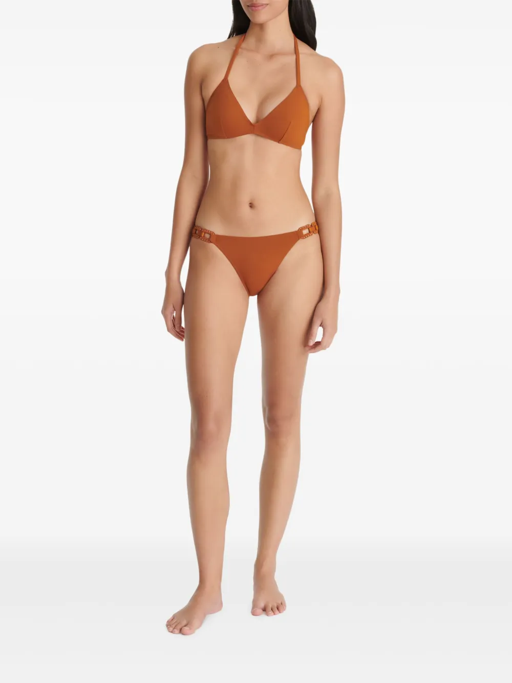 bruin verstelbaar halskoord klittenbandsluiting aan de achterkant triangel cup Zwemkleding moet over je eigen kleding worden aangepast.