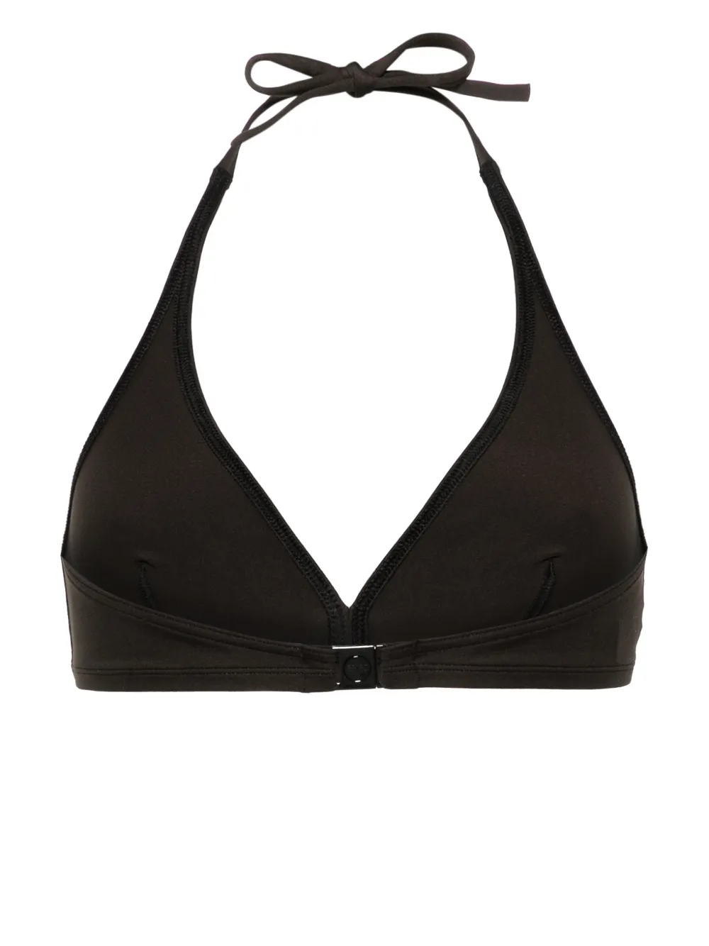 donkergrijs stretch design triangel cup halternek striksluiting sluiting aan de achterkant verstelbare pasvorm Zwemkleding moet over je eigen kleding worden aangepast.