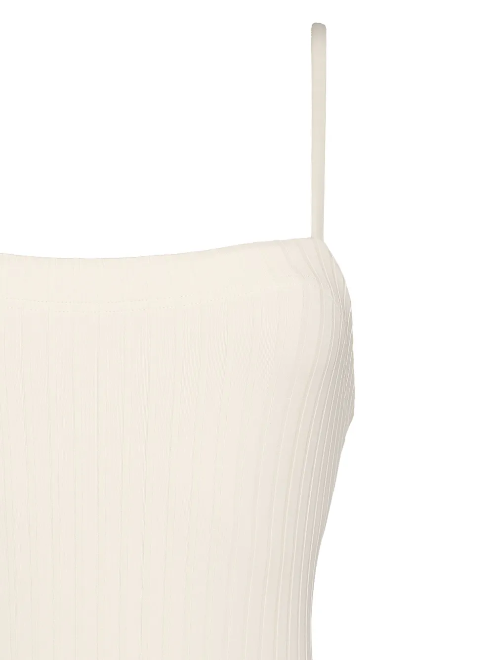 gebroken wit stretch design ribgebreid vierkante hals dunne schouderbandjes mouwloos instapmodel volledige voering Zwemkleding moet over je eigen kleding worden aangepast.