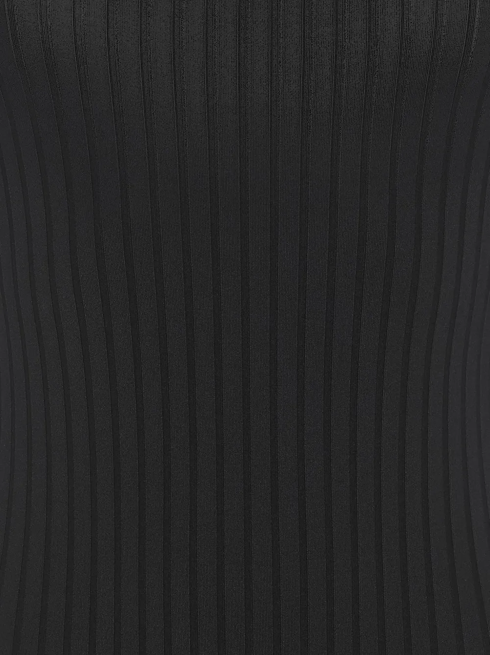 gitzwart stretch design ribgebreid vierkante hals dunne schouderbandjes mouwloos Zwemkleding moet over je eigen kleding worden aangepast.