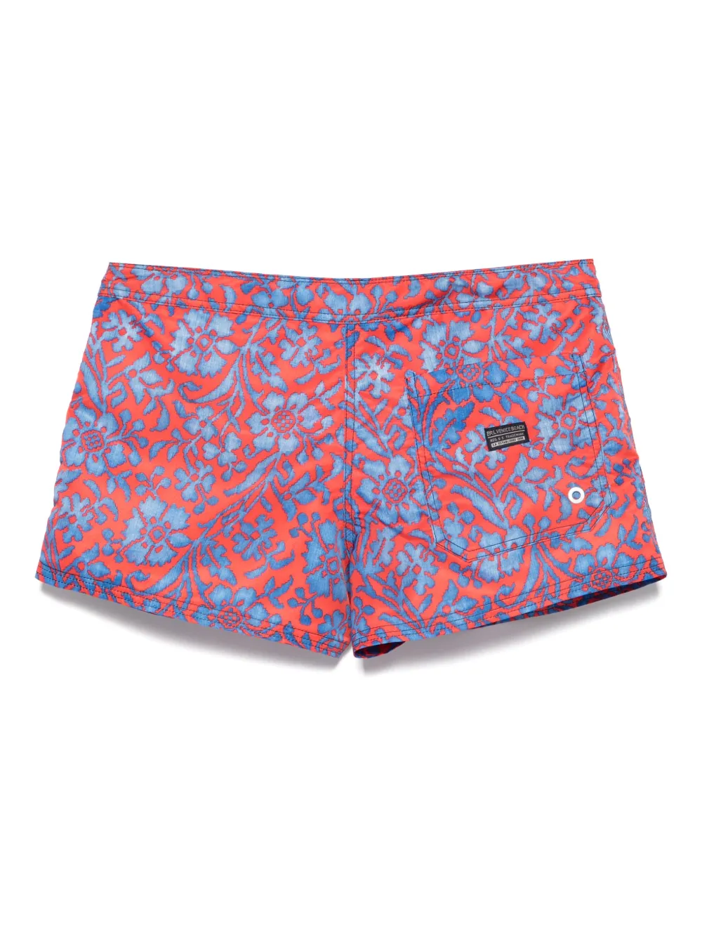rood trekkoordtaille twee steekzakken aan de zijkant opgestikte zak aan de achterkant Zwemkleding moet over je eigen kleding worden aangepast.