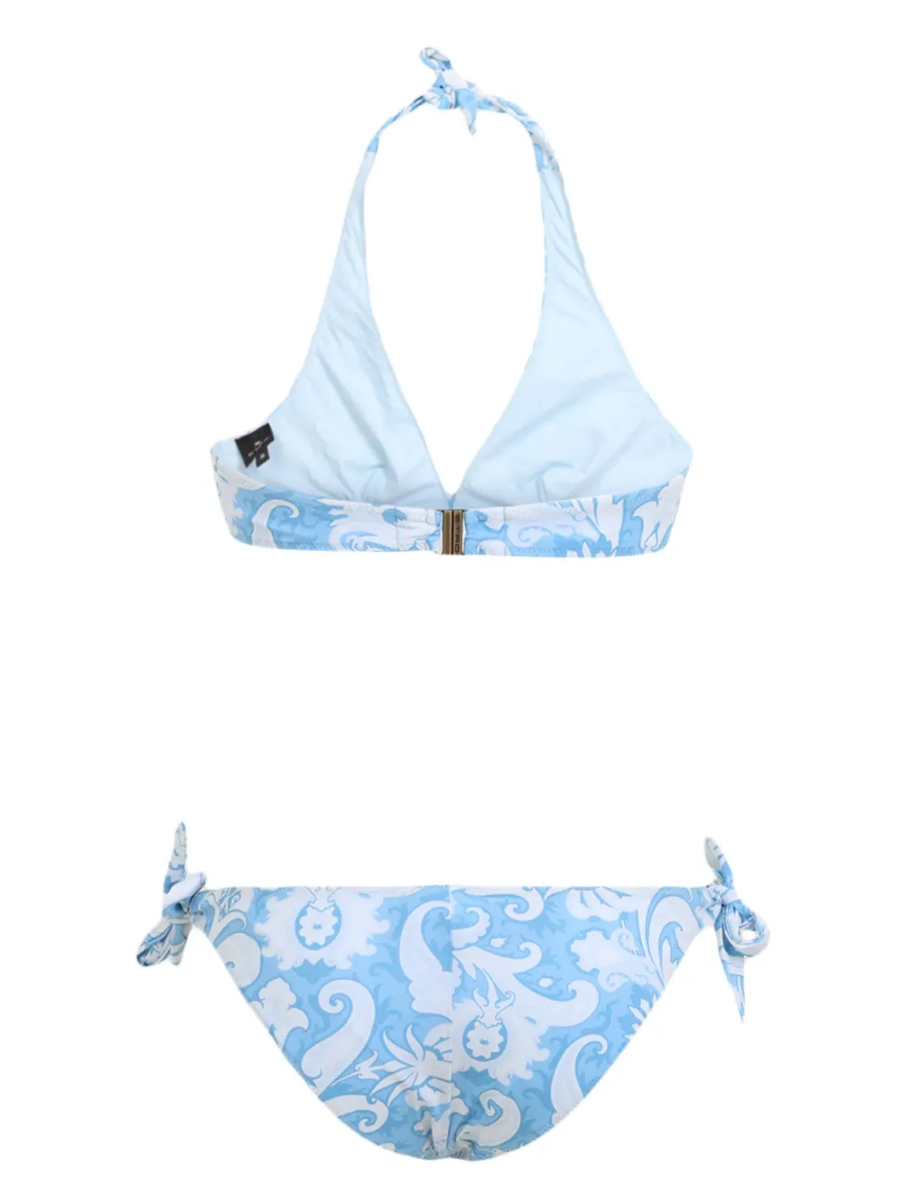 lichtblauw sluiting aan de achterkant halternek striksluiting striksluiting aan de zijkant Zwemkleding moet over je eigen kleding worden aangepast.