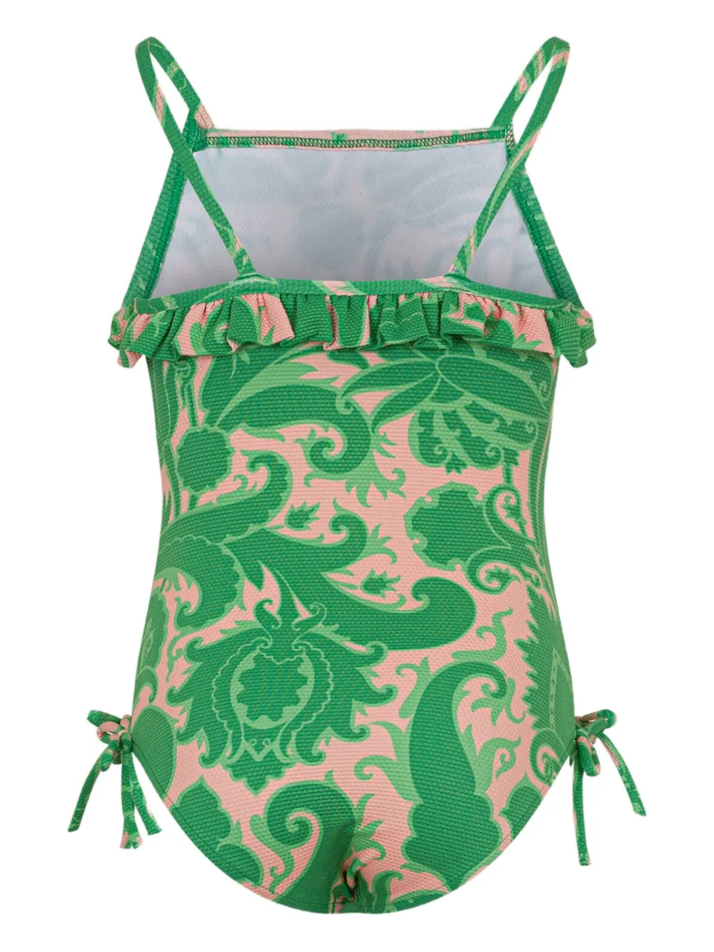smaragdgroen striksluiting aan de zijkant stretch design ruches Zwemkleding moet over je eigen kleding worden aangepast.