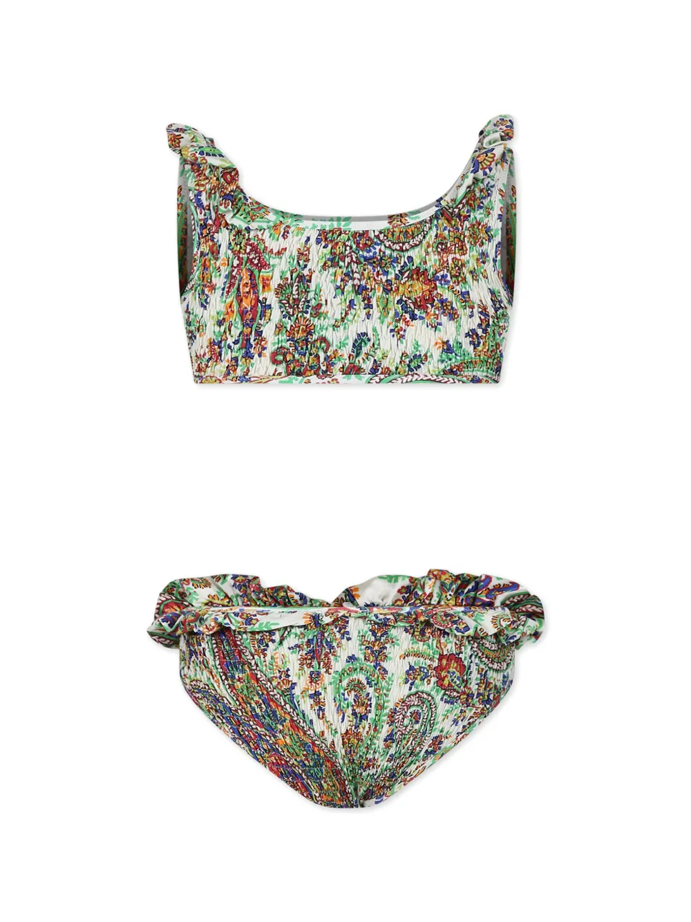 veelkleurig stretch design technische jersey gerimpeld effect all-over paisley print Top: dunne bandjes mouwloos vierkante hals gedraaid detail aan de halslijn volledige voering instapmodel Broek: ruches aan de mouwen volledige voering instapmodel Zwemkleding moet over je eigen kleding worden aangepast.