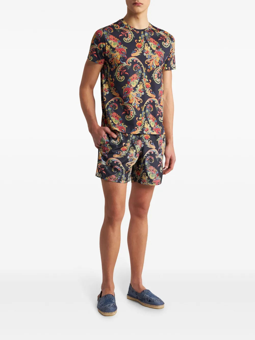 donkerblauw/veelkleurig paisley-print logo applicatie elastische tailleband met trekkoord twee steekzakken aan de zijkant klepzak aan de achterzijde dijlengte Zwemkleding moet over je eigen kleding worden aangepast.