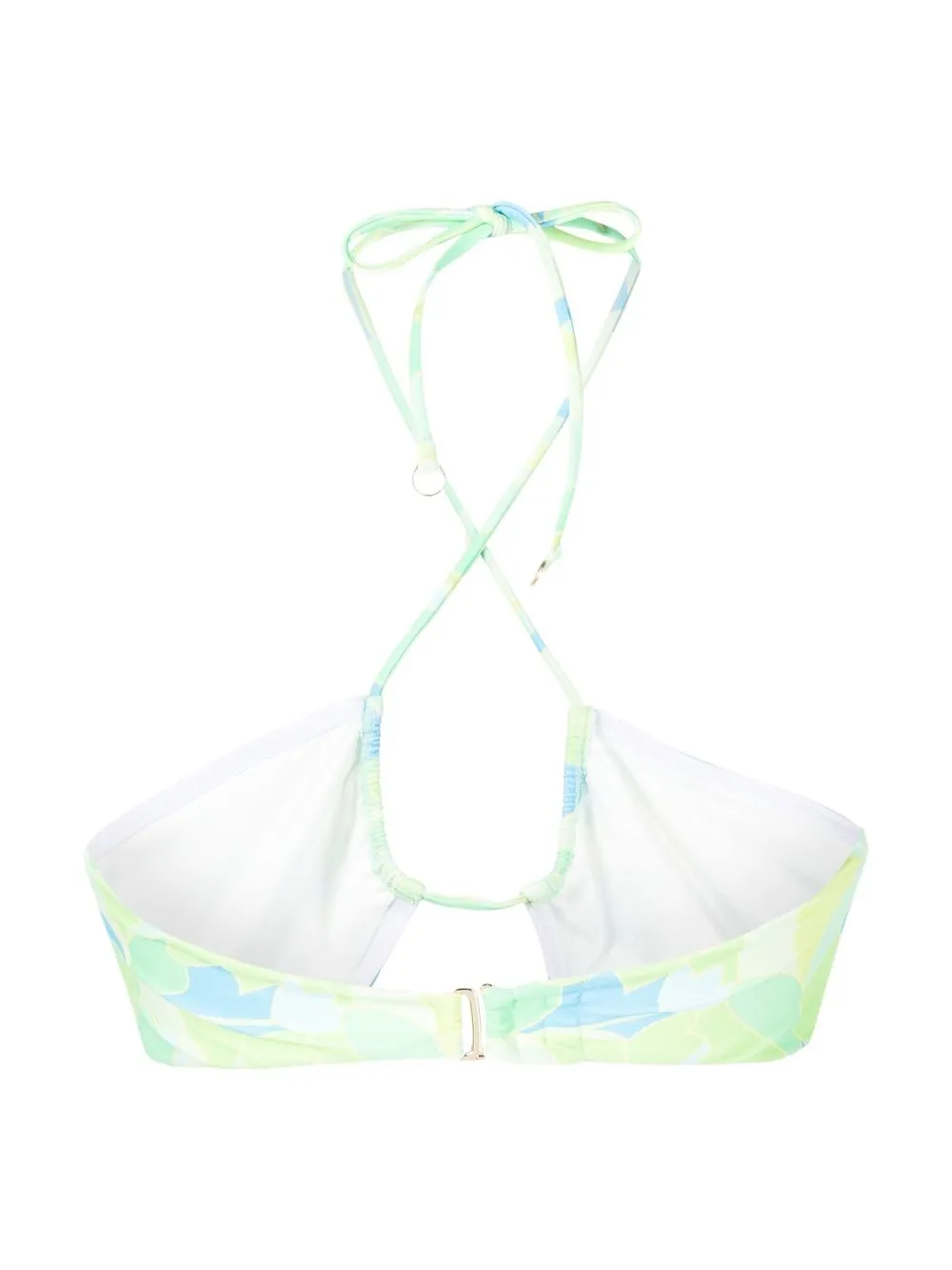 Aqua groen, abstract patroon, stretch design, halternek striksluiting en gespsluiting aan de achterkant. Zwemkleding moet over je eigen kleding worden aangepast.. Dit product komt van een duurzaam merk dat goed presteert met betrekking tot de impact op mensen en verzekert goede arbeidsvoorwaarden in de supply chain..