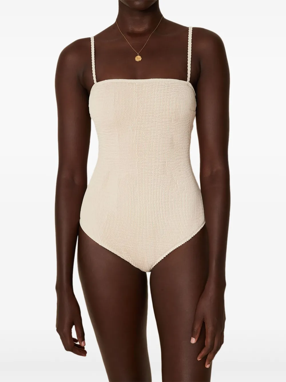 ivoor textuur vierkante halslijn dunne bandjes Zwemkleding moet over je eigen kleding worden aangepast.