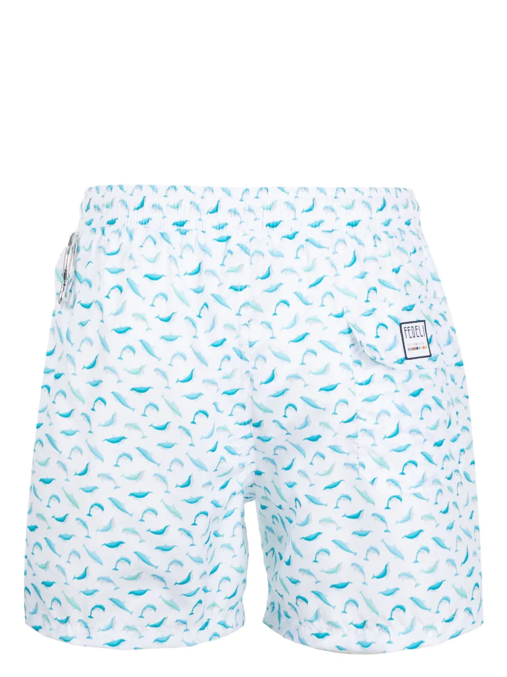 wit/veelkleurig all-over grafische print elastische tailleband met trekkoord twee ingenaaide zijzakken straight-fit zilverkleurige visvormige sleutelhanger klepzak achter logopatch aan de achterkant inwendige mesh slip instapmodel Zwemkleding moet over je eigen kleding worden aangepast.