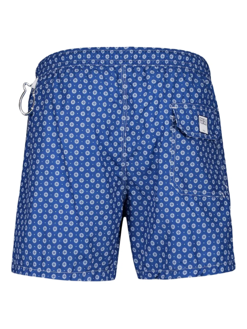 blauw bloemenpatroon elastische tailleband verstelbaar trekkoord achterzak gerecycled polyester Zwemkleding moet over je eigen kleding worden aangepast.