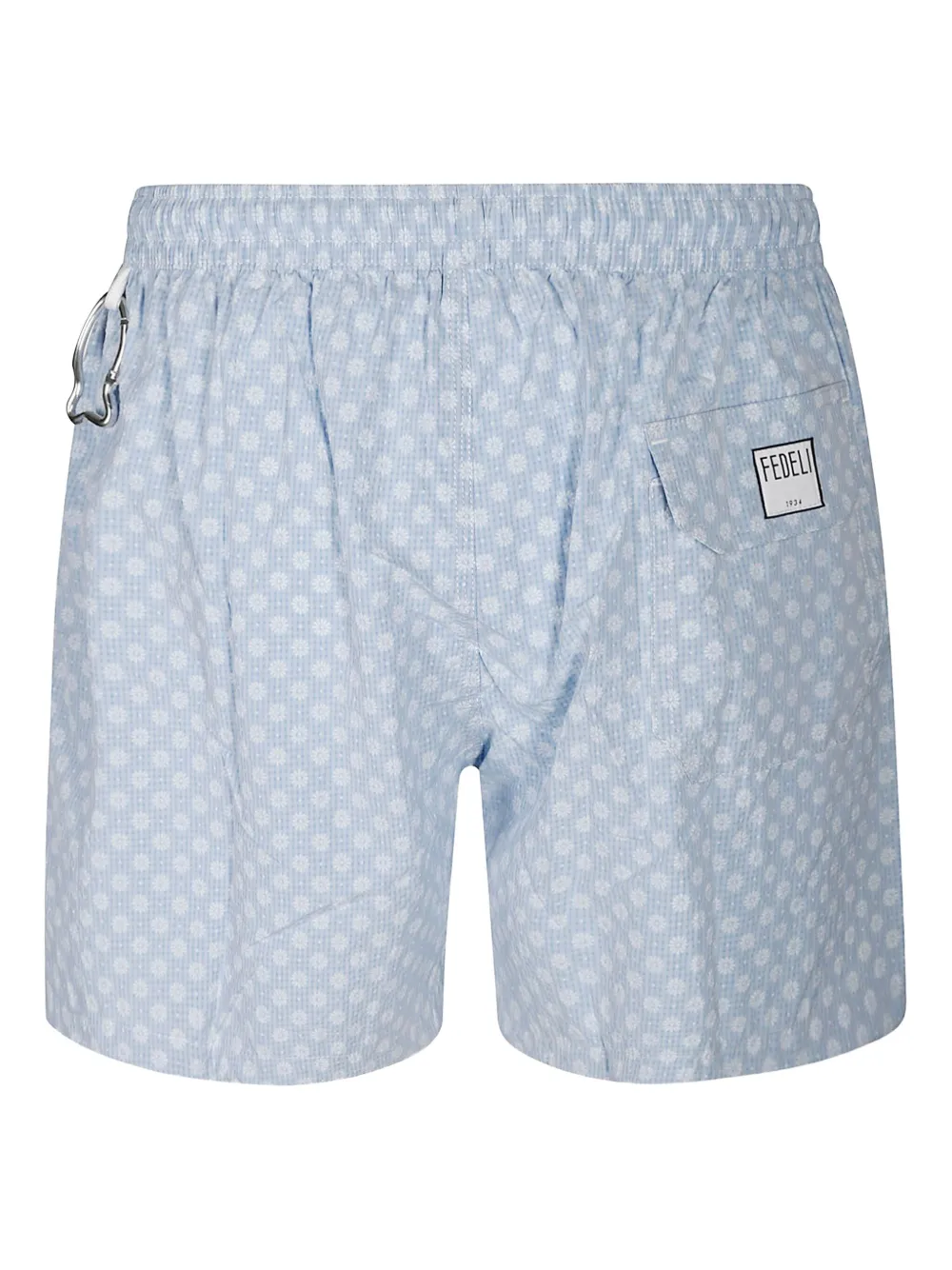 lichtblauw bloemenpatroon trekkoordsluiting elastische tailleband zijzakken Zwemkleding moet over je eigen kleding worden aangepast.