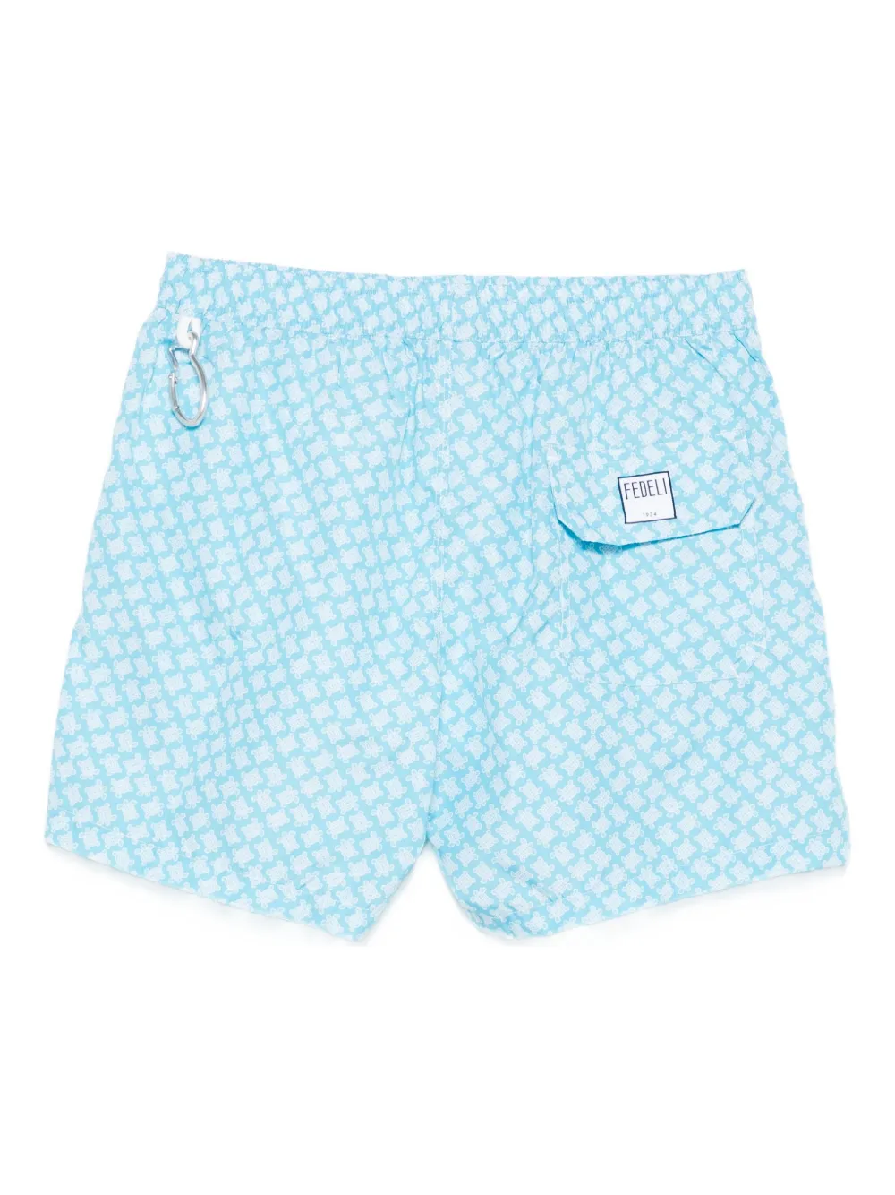lichtblauw all-over patroon trekkoordsluiting achterzak Zwemkleding moet over je eigen kleding worden aangepast.