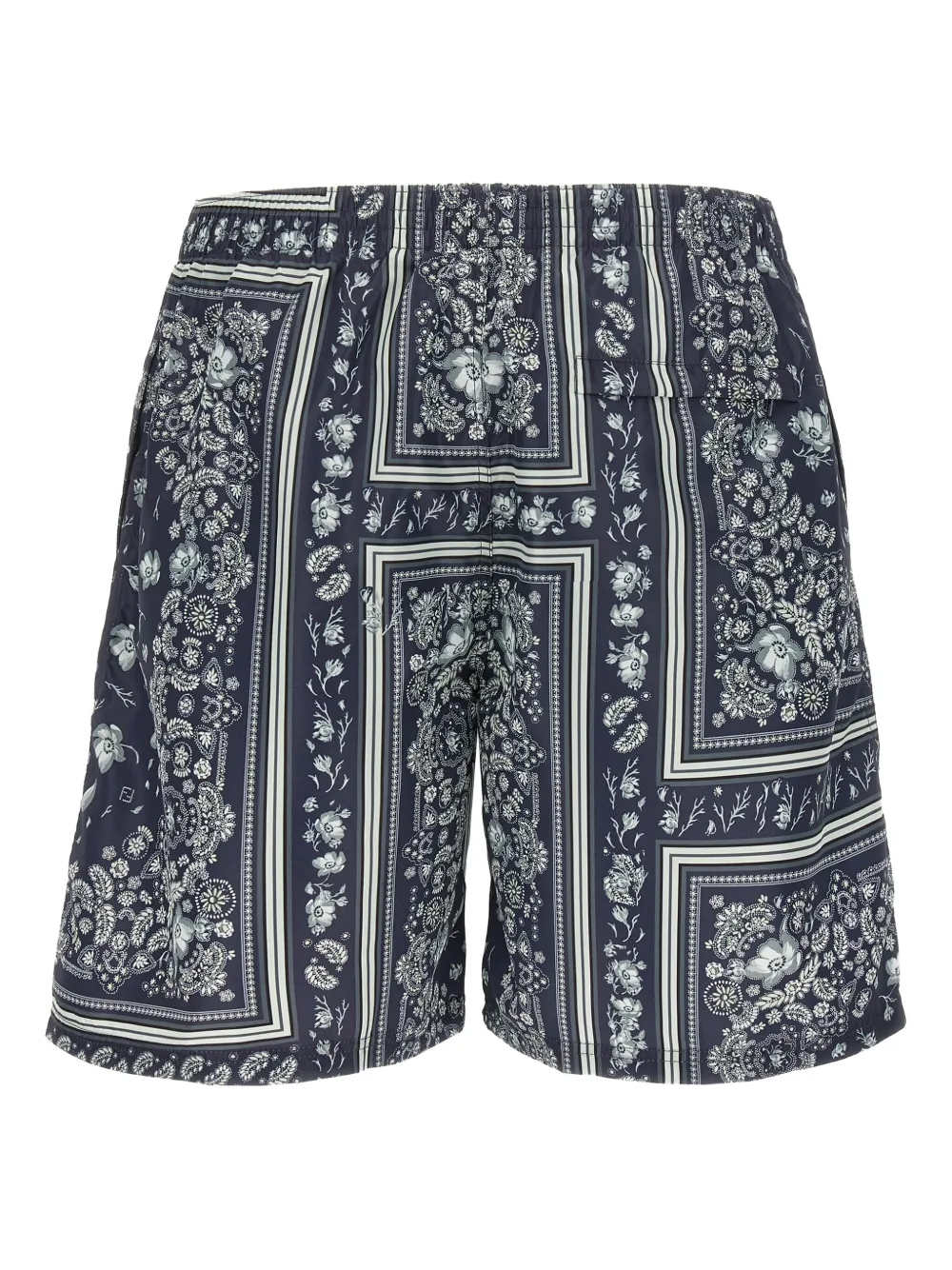 marineblauw bloemenpatroon elastische tailleband trekkoord detail zijzakken Zwemkleding moet over je eigen kleding worden aangepast.