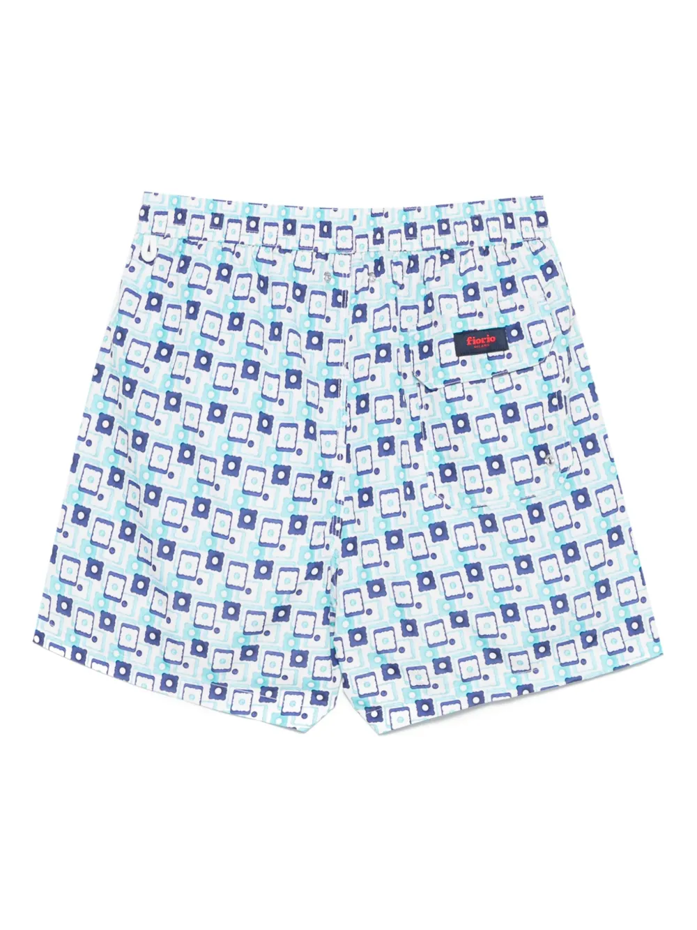 blauw/wit elastische tailleband met trekkoord geometrische print steekvakken aan de zijkant logopatch aan de achterkant klepzak aan de achterkant Zwemkleding moet over je eigen kleding worden aangepast.